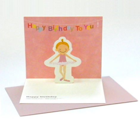 Little Ballerina pop-up birthday greeting card. Envelope included. 9cm x 14cm.