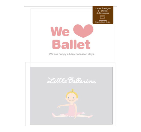 Little Ballerina letter set with 2 design x 4 pieces letter papers, and 4 parchment paper envelopes. 14cm x 18cm.
