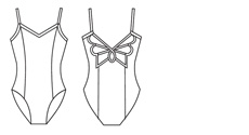 An all time favourite, a camisole leotard with intricate strappy butterfly back treatment and slimming front and back princess seams. Has a V-neck front and power mesh supportive shelf bra lining. 88% cotton, 12% lycra.