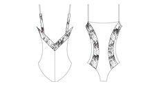 Camisole leotard with flattering lace details. Front lining. Soft meryl.
