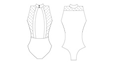 High neck leotard with dotted mesh details and open back. Front lining. Soft meryl.