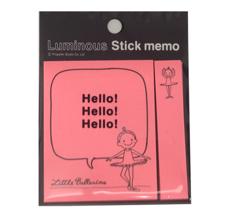 Little Ballerina stick memo in luminous colours! Stick marker strip measures 1.5cm x 7.5cm, stick memo measures 6cm x 7.5cm. 50 pieces each. [Text "Hello! Hello! Hello!" only for illustration, not in memo.]